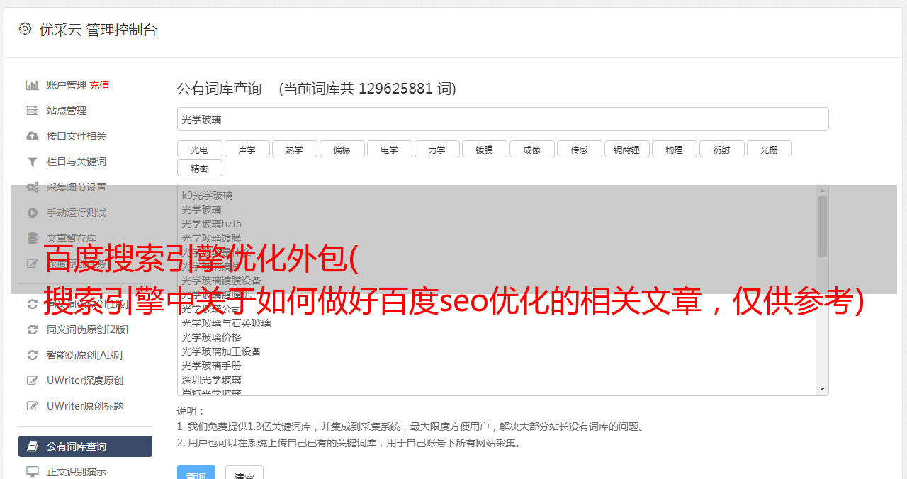 优采云 发布时间: 2021-11-25 07:15百度搜索引擎优化外包(