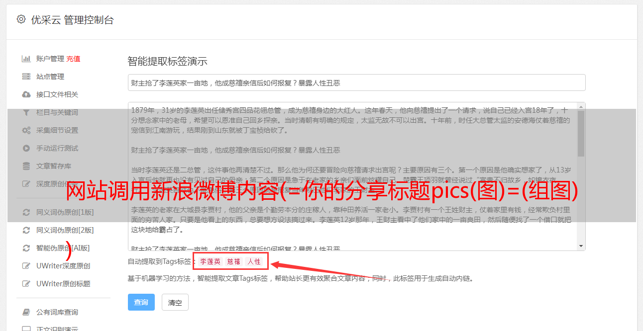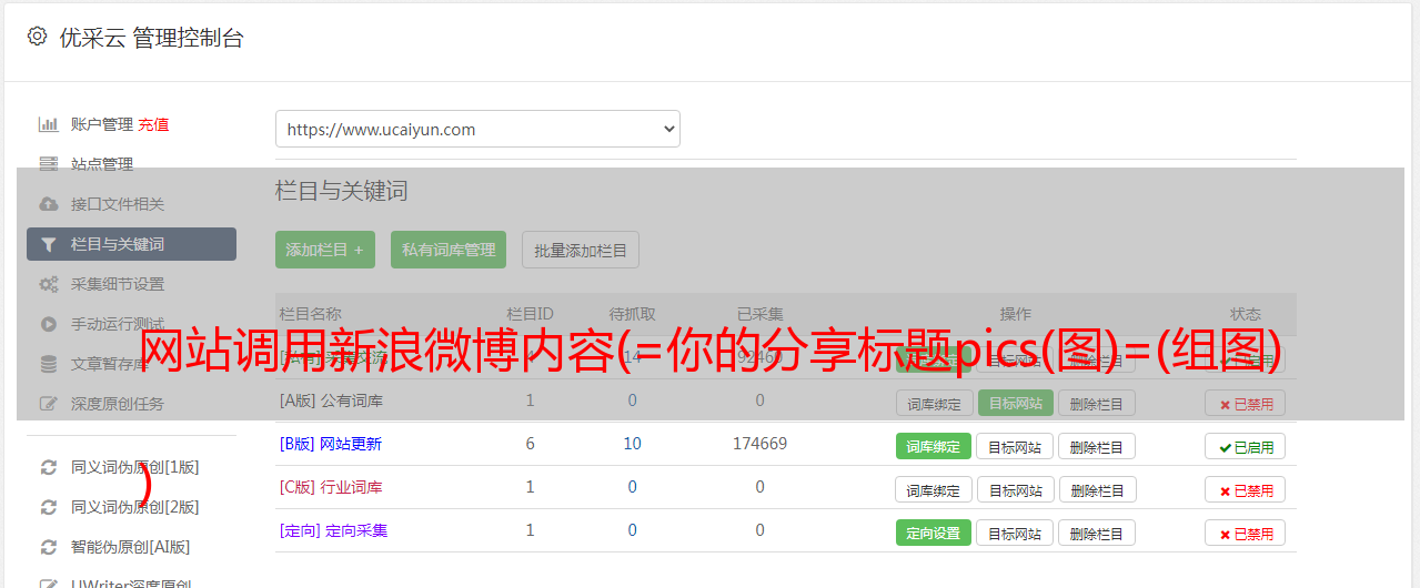 优采云 发布时间: 2021-11-25 11:15网站调用新浪微博内容(=你的分享标题pics(图)=(组图)