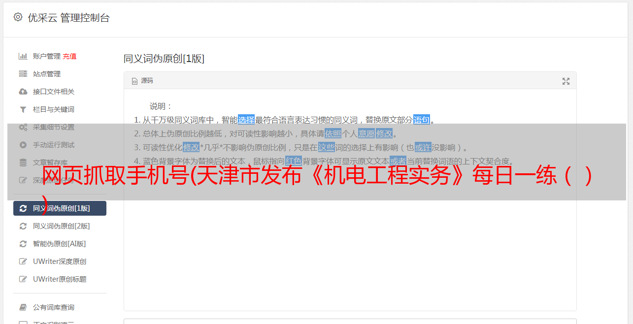 优采云 发布时间: 2021-11-25 16:17网页抓取手机号(天津市发布《机电工程实务》每日一练()
