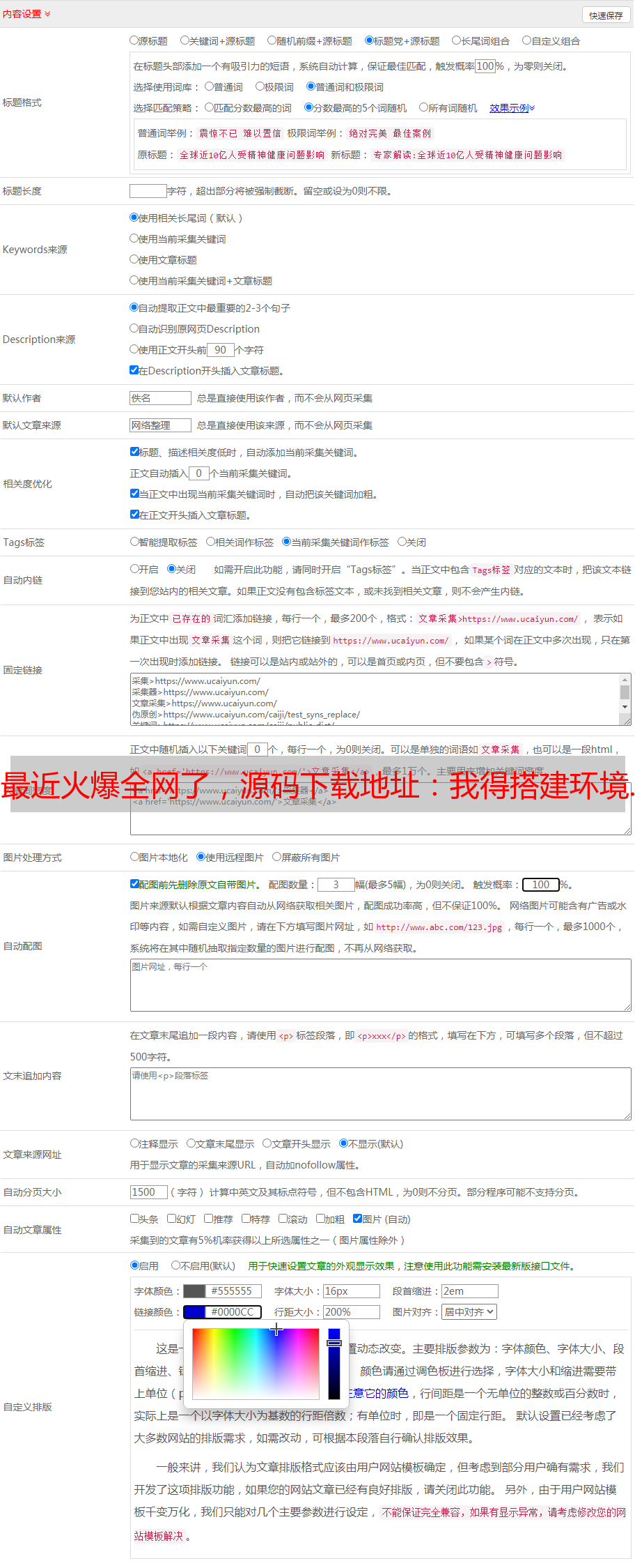 安装完成后,输入网站配置。不会介绍后台功能设置,仅说明如何启动自动采集