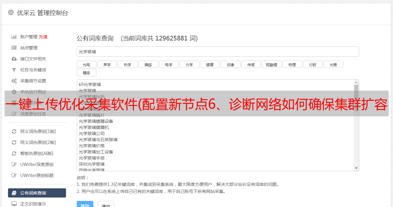 优采云 发布时间: 2021-11-25 20:00一键上传优化采集软件(配置新节点6、诊断网络如何确保集群扩容过程中