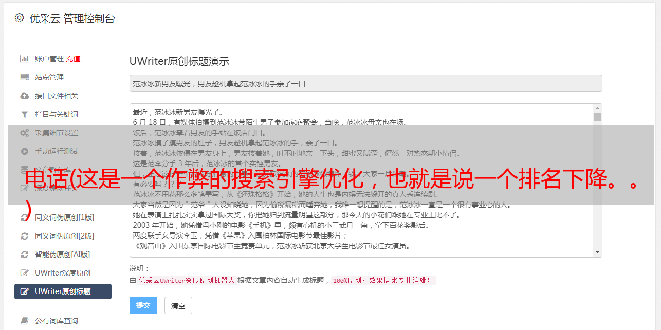 优采云 发布时间: 2021-11-25 20:17电话(这是一个作弊的搜索引擎优化,也就是说一个排名下降。。