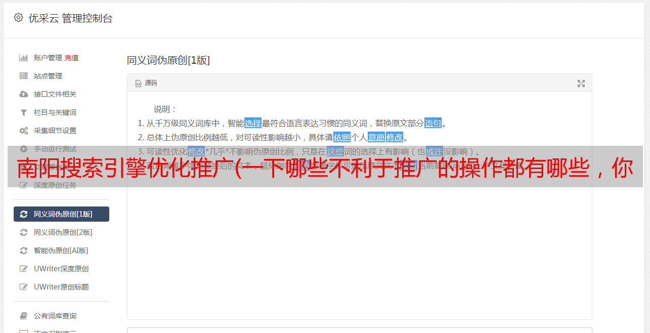 优采云 发布时间: 2021-11-25 23:09南阳搜索引擎优化推广(一下哪些不利于推广的操作都有哪些,你知道吗?)