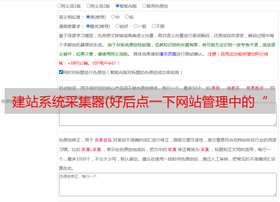 建站系统采集器(好后点一下网站管理中的“更新载入网站配置”说明)