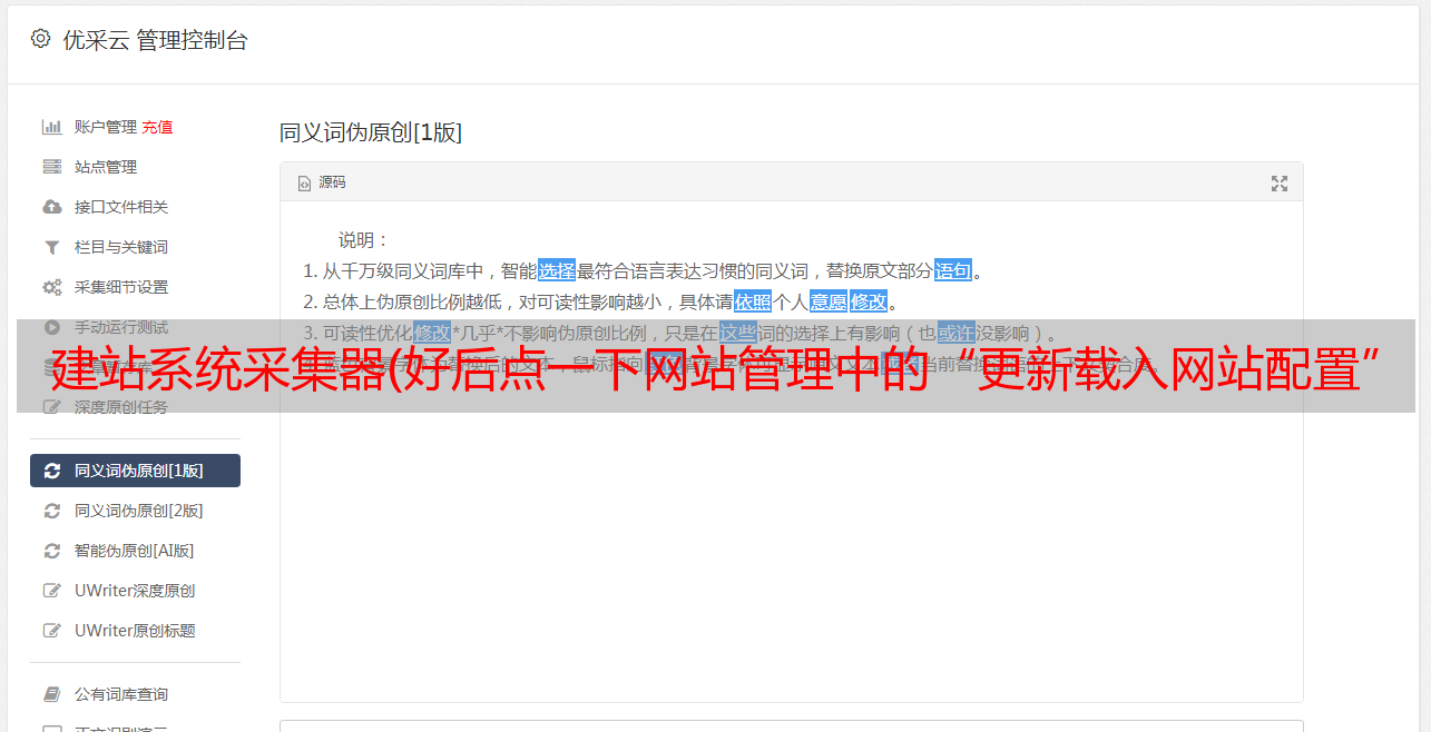 优采云 发布时间: 2021-11-26 03:02建站系统采集器(好后点一下网站管理中的“更新载入网站配置”说明)