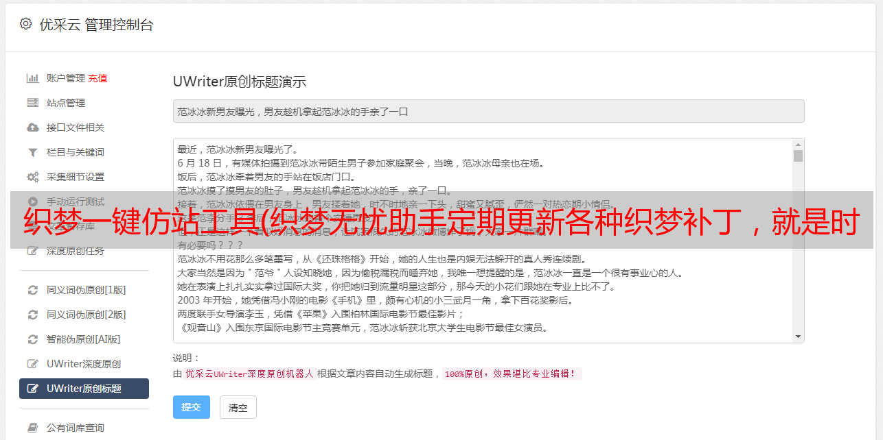 优采云 发布时间: 2021-11-26 11:20织梦一键仿站工具(织梦无忧助手定期更新各种织梦补丁,就是时间显示样式)