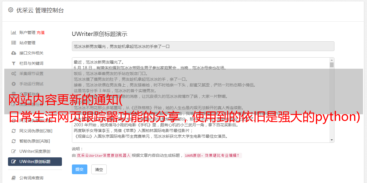 优采云 发布时间: 2021-11-26 12:18网站内容更新的通知(
