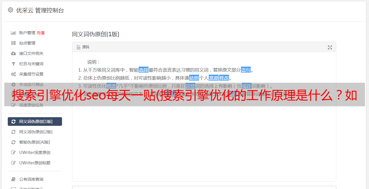 优采云 发布时间: 2021-11-26 17:24搜索引擎优化seo每天一贴(搜索引擎优化的工作原理是什么?如何了解搜索引擎的浅析)