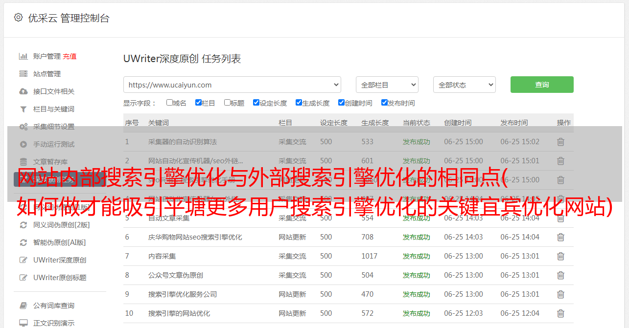 优采云 发布时间: 2021-11-26 23:25网站内部搜索引擎优化与外部搜索引擎优化的相同点(