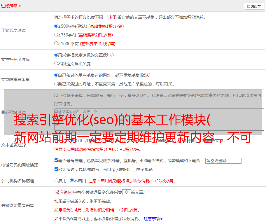 搜索引擎优化(seo)的基本工作模块( 新网站前期一定要定期维护更新内容,不可时多)
