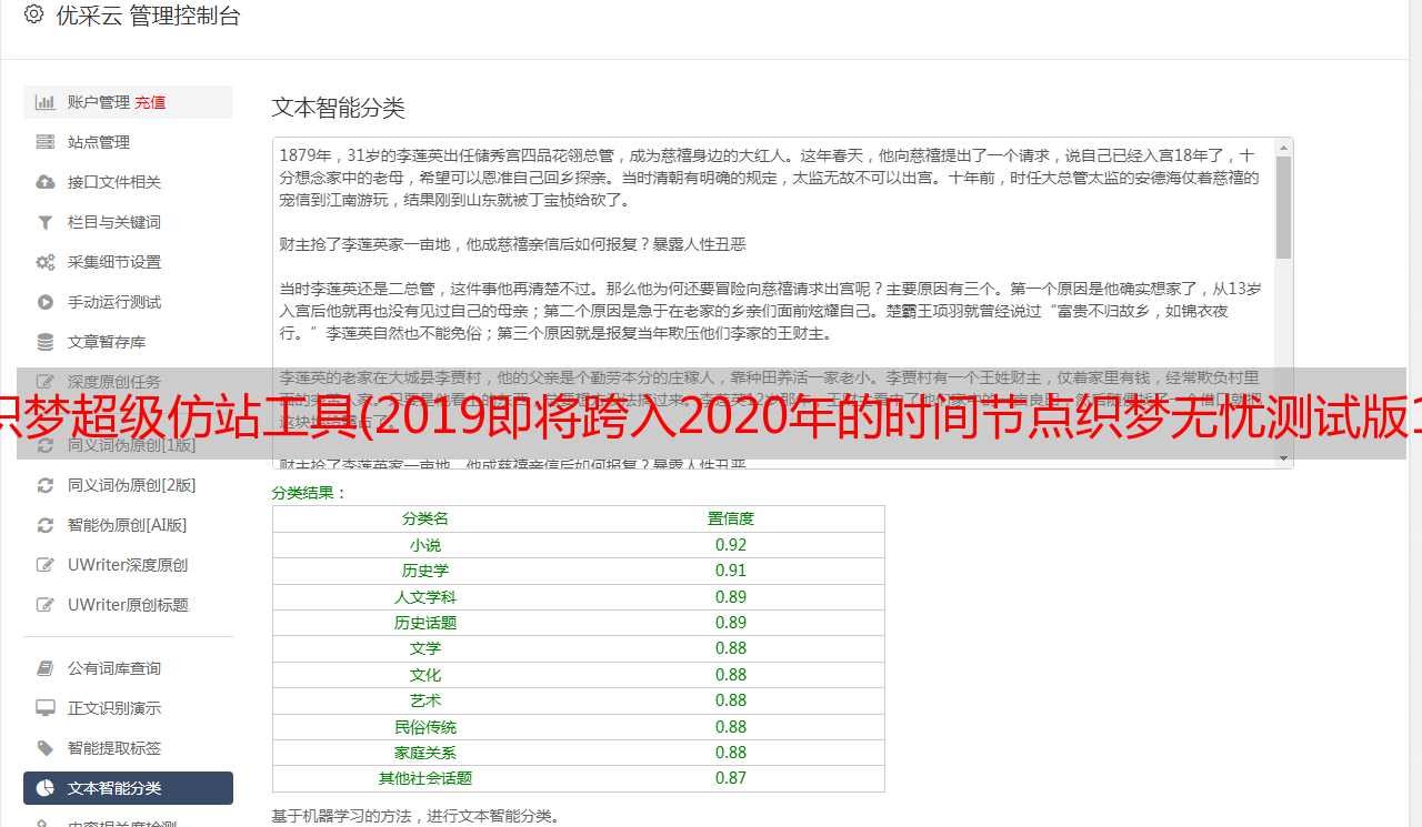 优采云 发布时间: 2021-11-27 01:15织梦超级仿站工具(2019即将跨入2020年的时间节点织梦无忧测试版1.0.01.0.0)