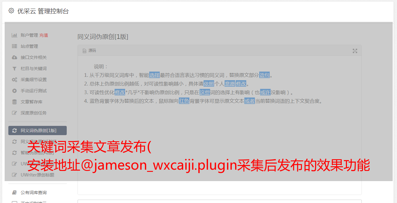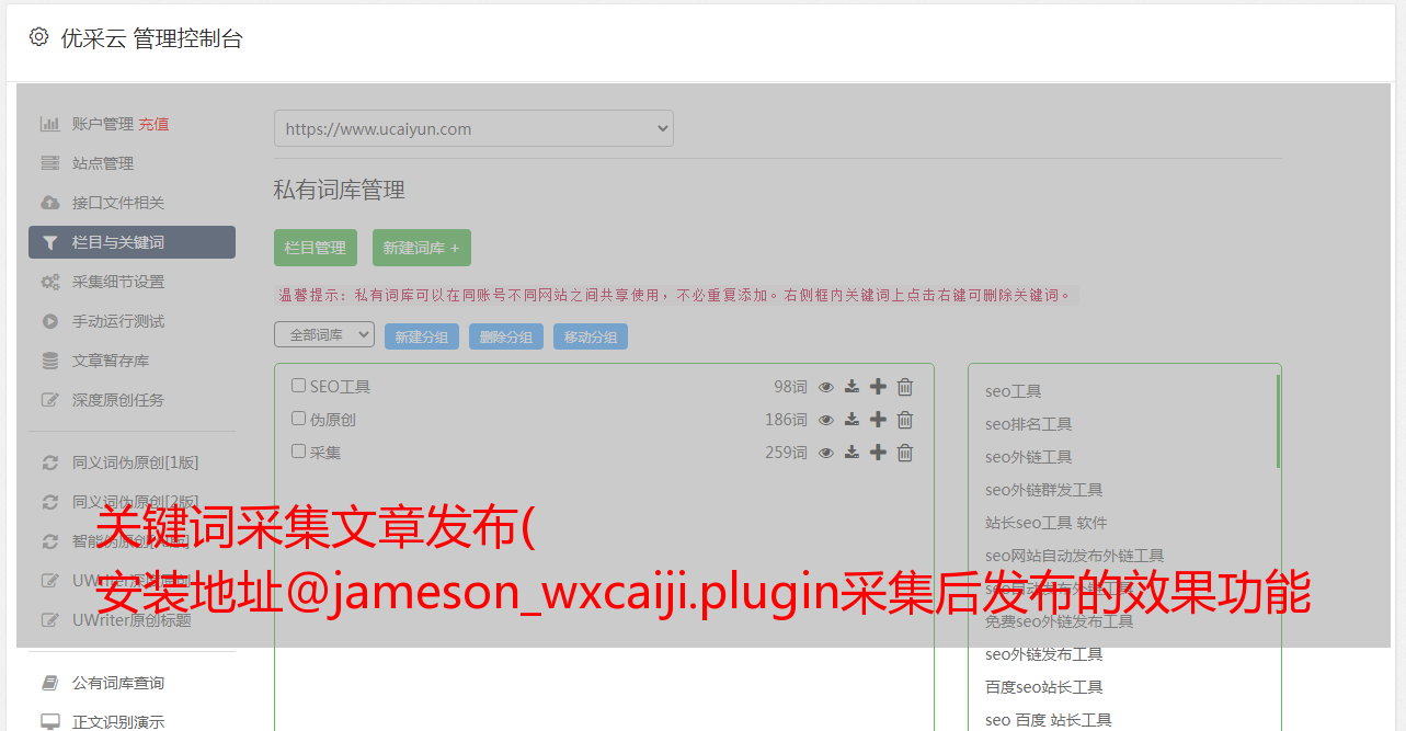 优采云 发布时间: 2021-11-27 07:05安装地址@jameson_wxcaiji.plugin采集后发布的效果功能