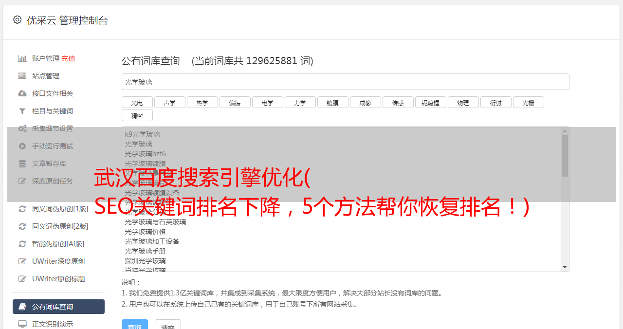 优采云 发布时间: 2021-11-27 09:01武汉百度搜索引擎优化(