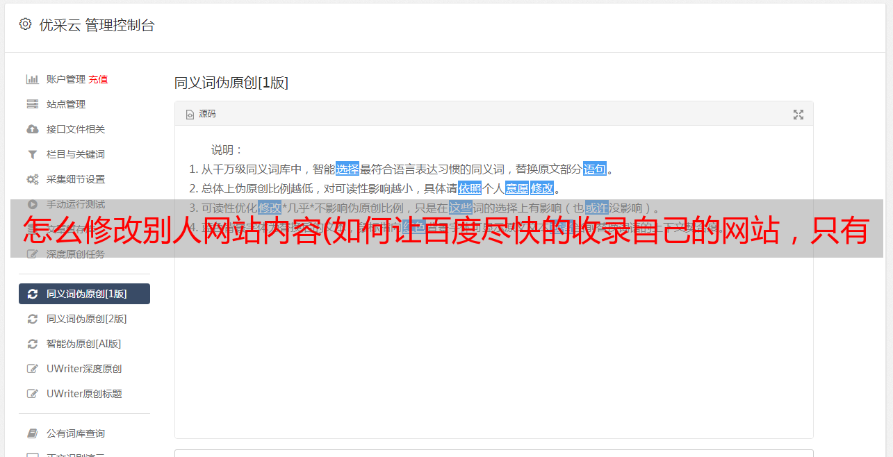 优采云 发布时间: 2021-11-27 09:24怎么修改别人网站内容(如何让百度尽快的收录自己的网站,只有被百度收录)
