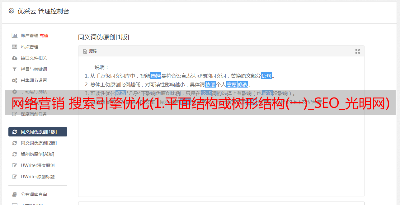 优采云 发布时间: 2021-11-27 11:19网络营销 搜索引擎优化(1.平面结构或树形结构(一)_SEO_光明网)