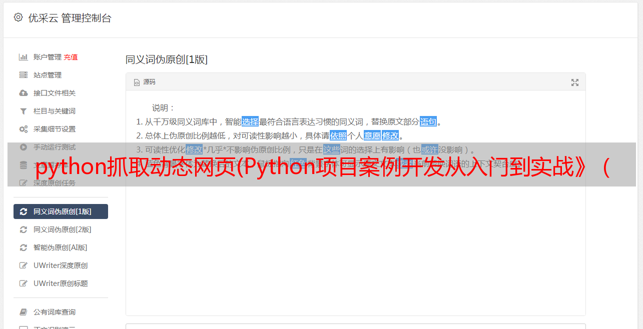 优采云 发布时间: 2021-11-27 14:11python抓取动态网页(Python项目案例开发从入门到实战》(清华大学出版社郑秋生))