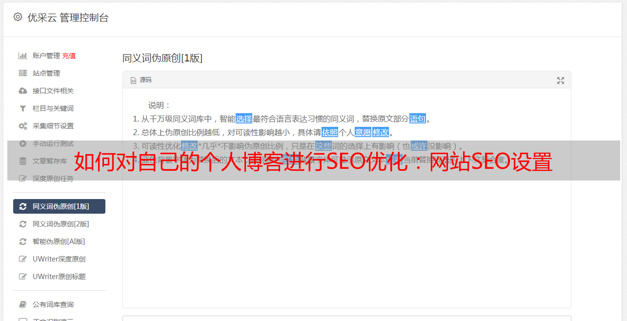 优采云 发布时间: 2021-03-31 21:05如何对自己的个人博客进行SEO优化:网站SEO设置