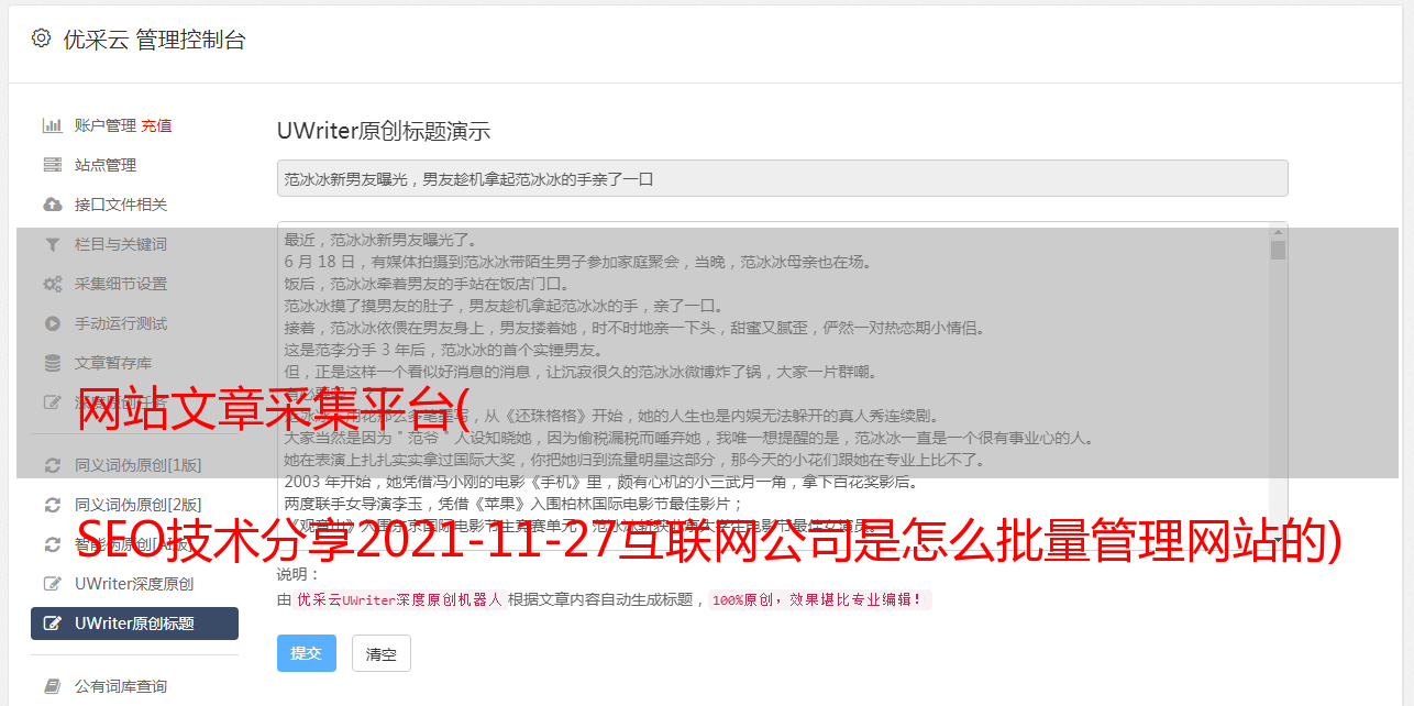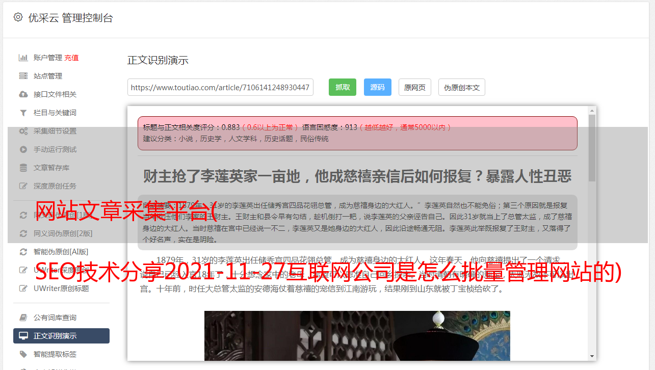 网站文章采集平台( SEO技术分享2021-11-27互联网公司是怎么批量管理网站的)