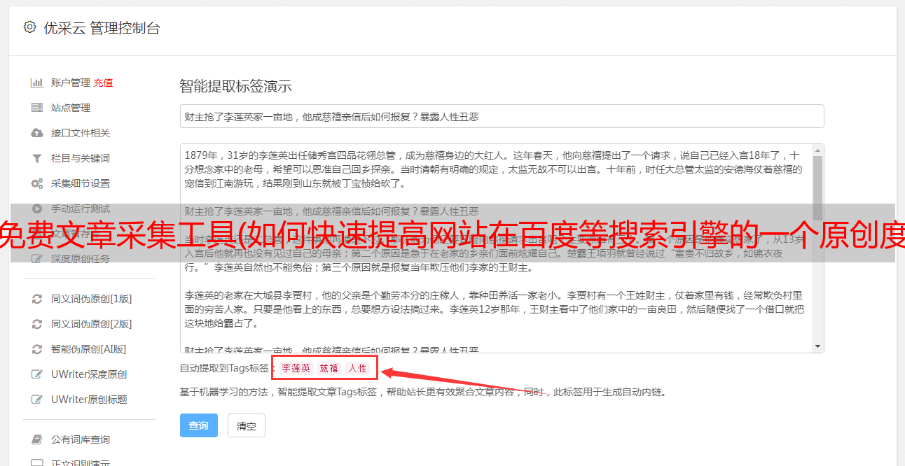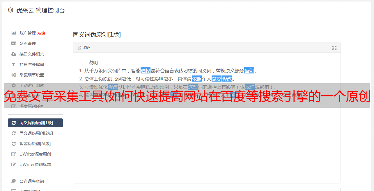 优采云 发布时间: 2021-11-28 05:18免费文章采集工具(如何快速提高网站在百度等搜索引擎的一个原创度?