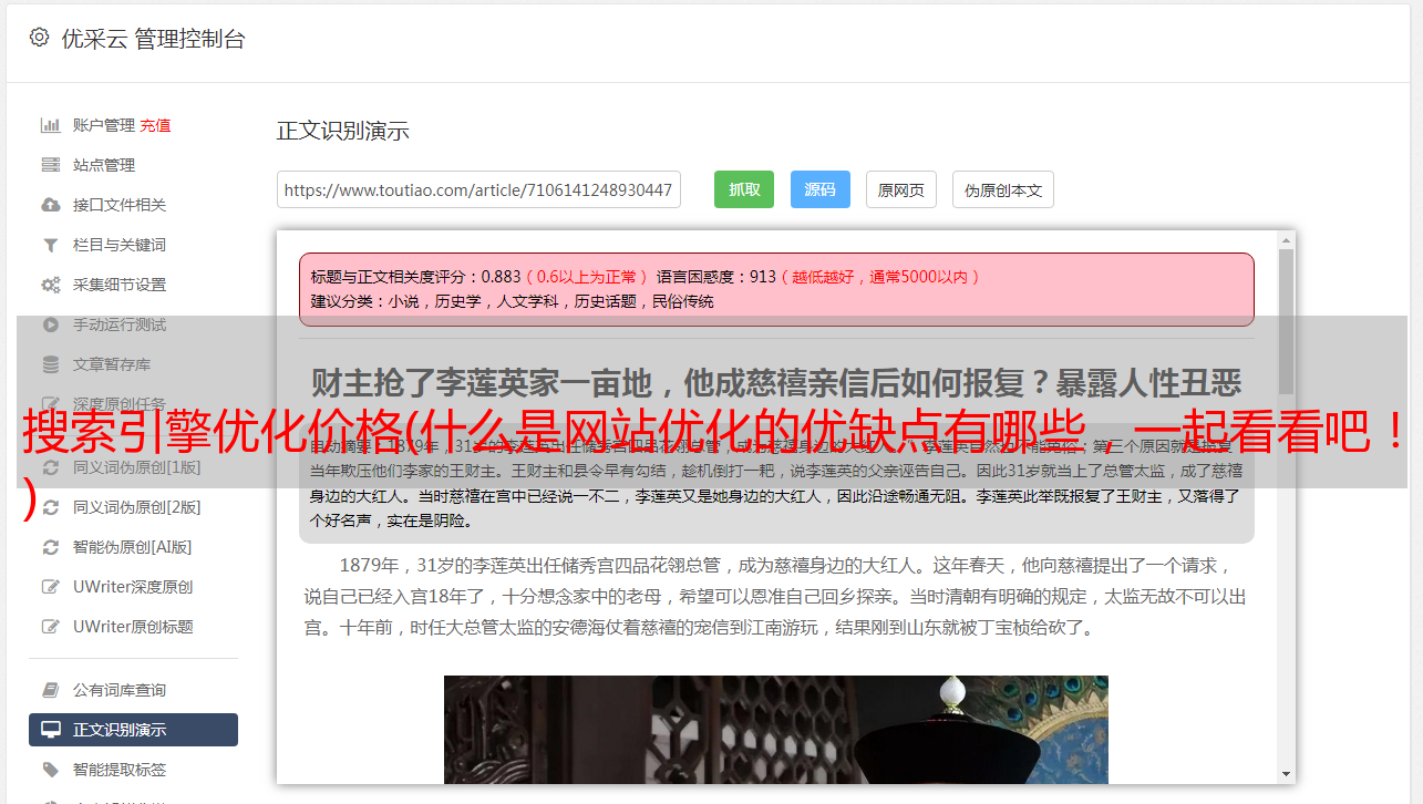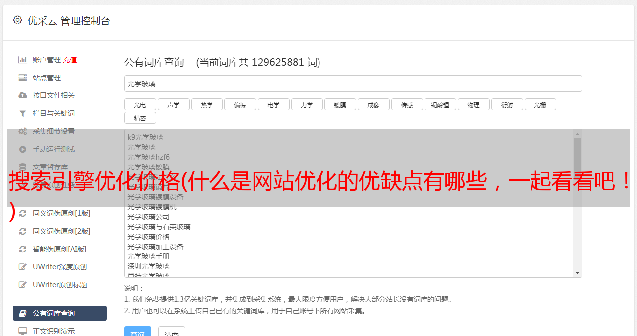 优采云 发布时间: 2021-11-28 13:15搜索引擎优化价格(什么是网站优化的优缺点有哪些,一起看看吧!