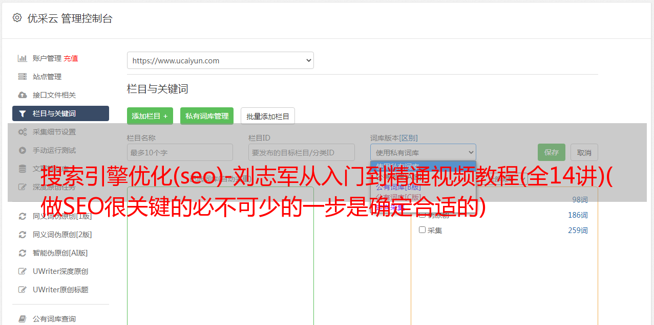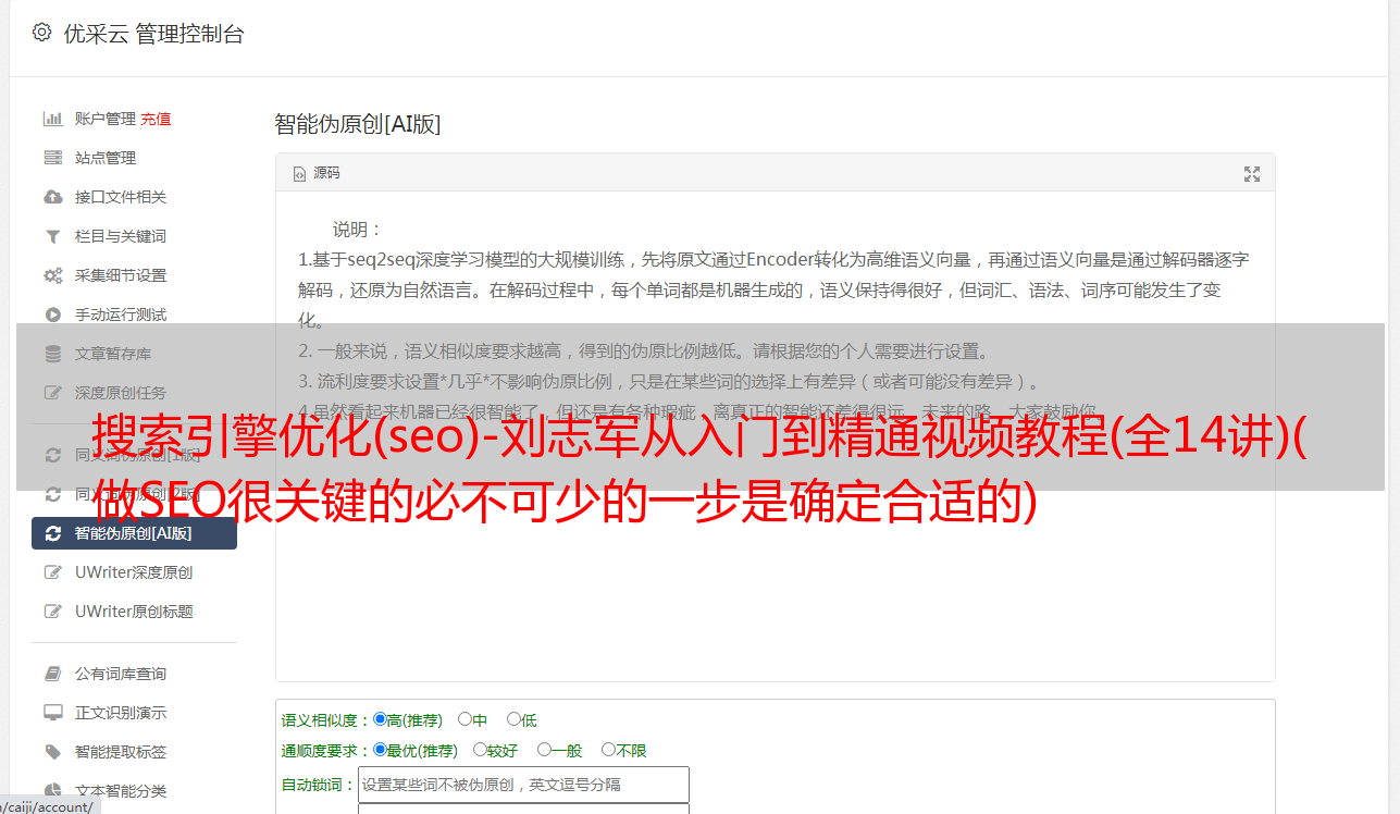优采云 发布时间: 2021-11-28 19:27搜索引擎优化(seo)-刘志军从入门到精通视频教程(全14讲)(