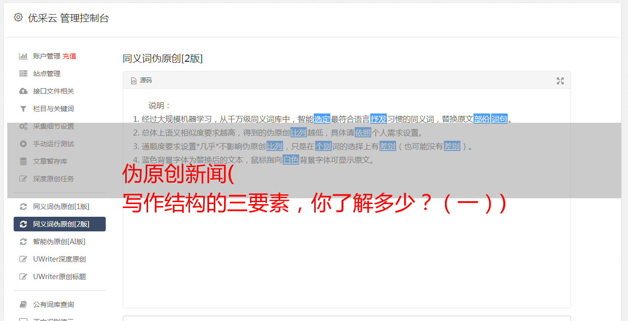 在你伪原创写完一篇文章文章之后,你还需要一些伪原创测试工具来检测这个文章不合格。