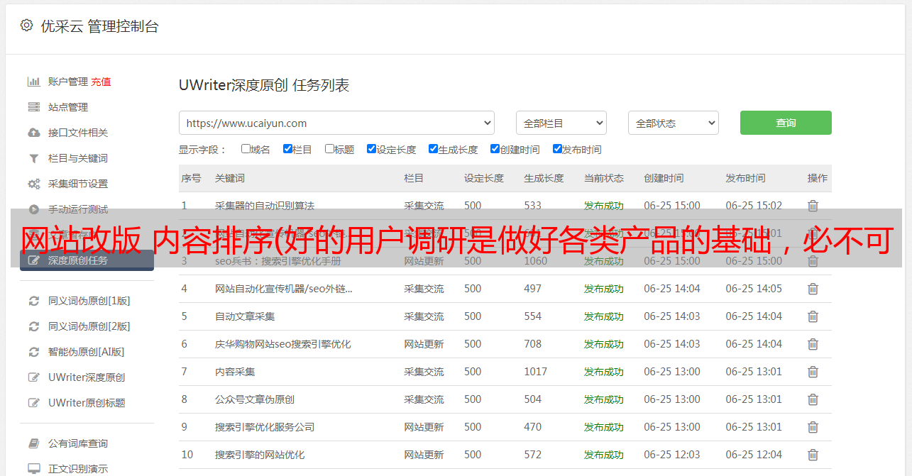 优采云 发布时间: 2021-11-29 02:21网站改版 内容排序(好的用户调研是做好各类产品的基础,必不可少!)