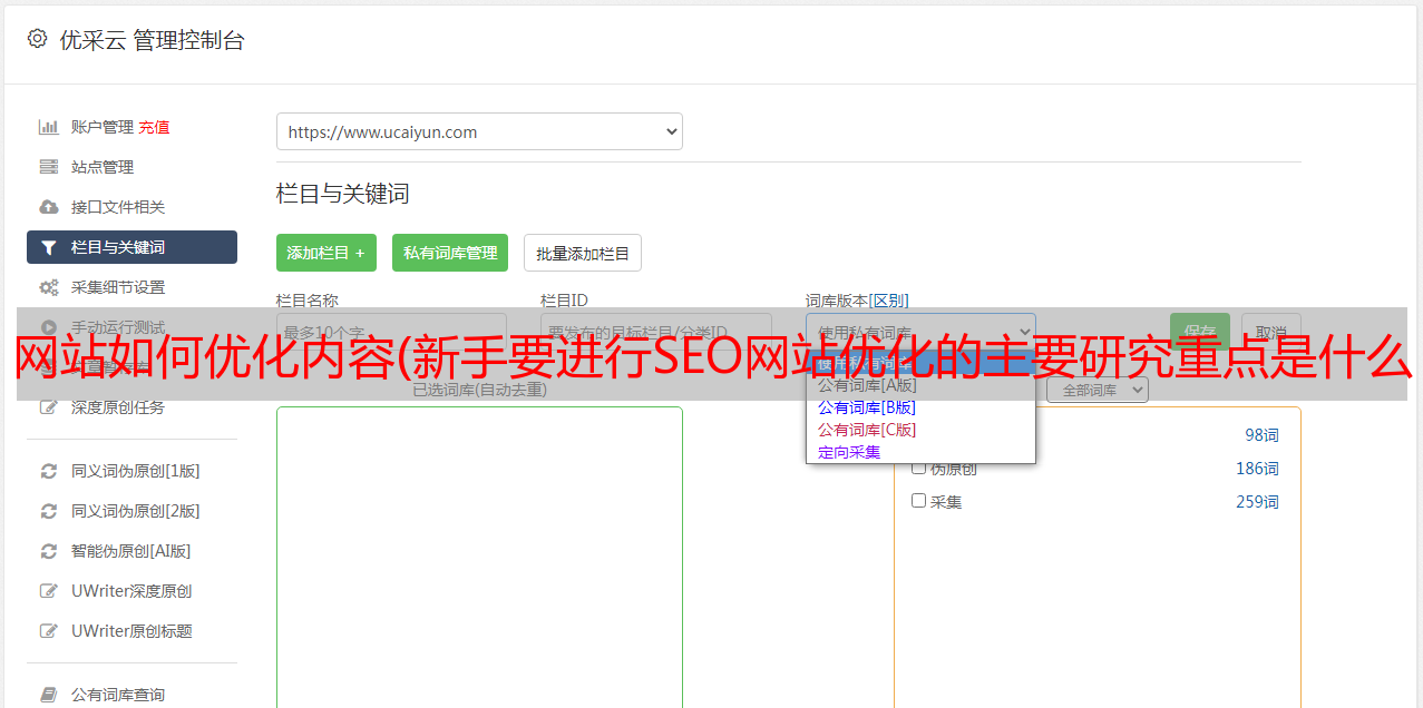 优采云 发布时间: 2021-11-29 03:20网站如何优化内容(新手要进行SEO网站优化的主要研究重点是什么?