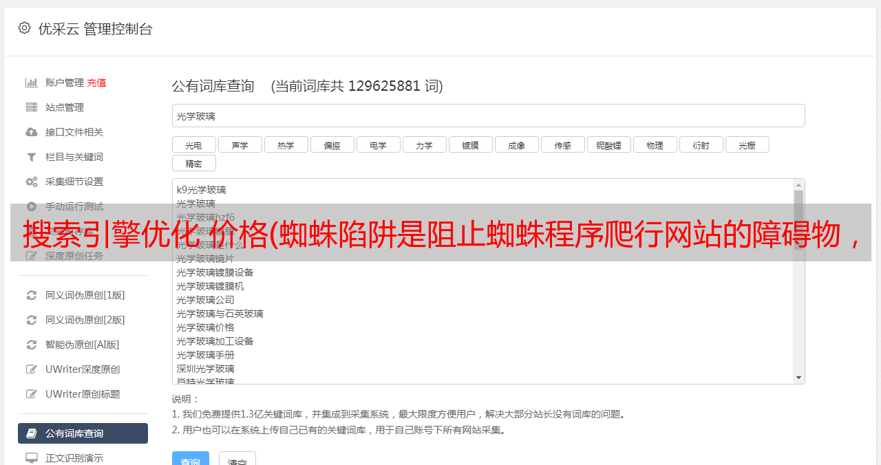 优采云 发布时间: 2021-11-29 04:17搜索引擎优化 价格(蜘蛛陷阱是阻止蜘蛛程序爬行网站的障碍物,SO需要数据分析吗?)