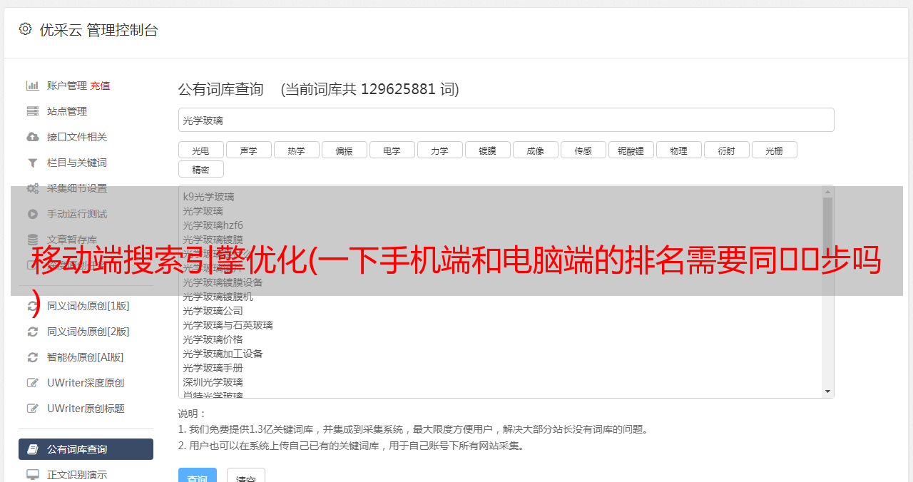 优采云 发布时间: 2021-11-29 08:11移动端搜索引擎优化(一下手机端和电脑端的排名需要同步吗