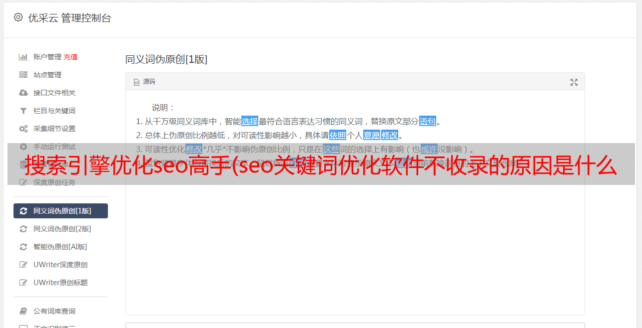 优采云 发布时间: 2021-11-29 09:05搜索引擎优化seo高手(seo关键词优化软件不收录的原因是什么以及如何解决)