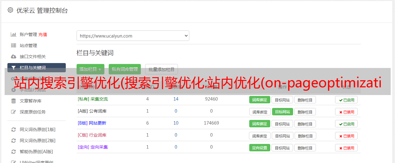 优采云 发布时间: 2021-11-29 10:16站内搜索引擎优化(搜索引擎优化:站内优化(on-pageoptimization)SEO的核心是优化)