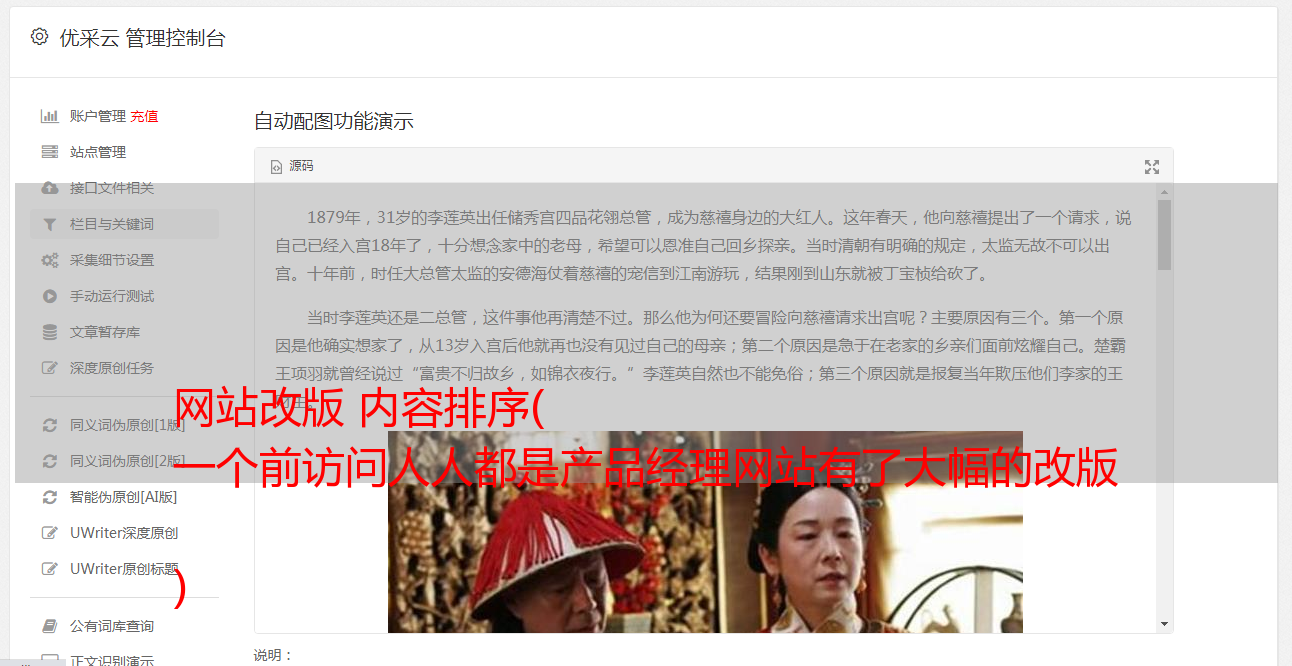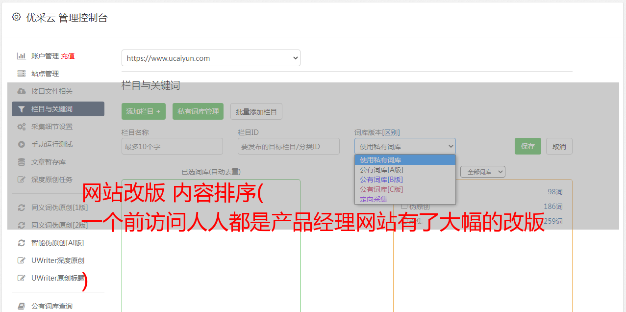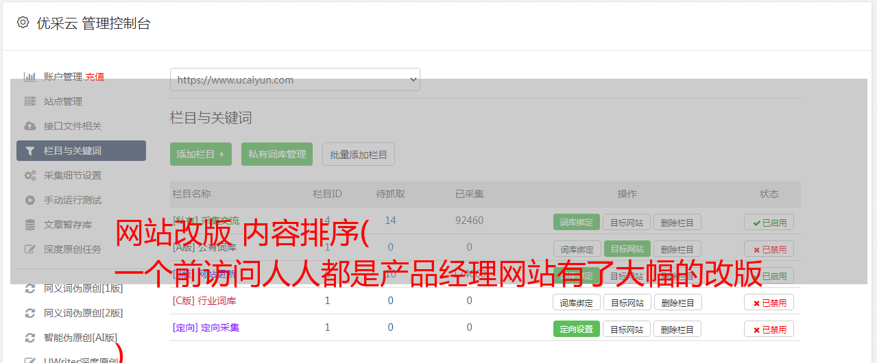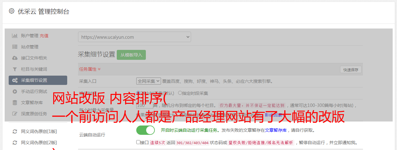 优采云 发布时间: 2021-11-29 14:22网站改版 内容排序(