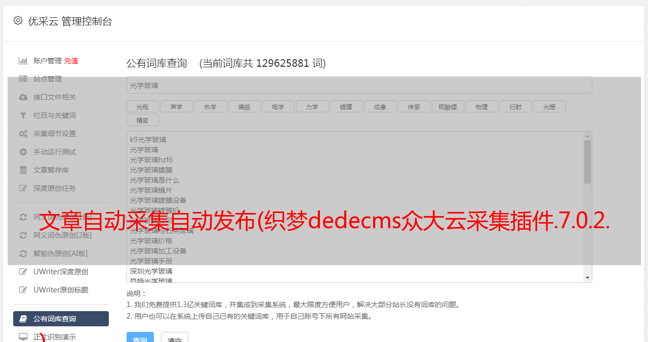 优采云 发布时间: 2021-11-29 16:05文章自动采集自动发布(织梦dedecms众大云采集插件.7.0.2.