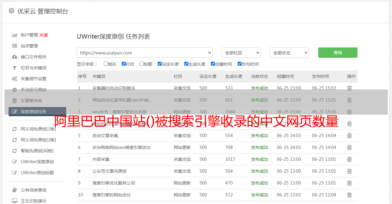 阿里巴巴中国站()被搜索引擎收录的中文网页数量