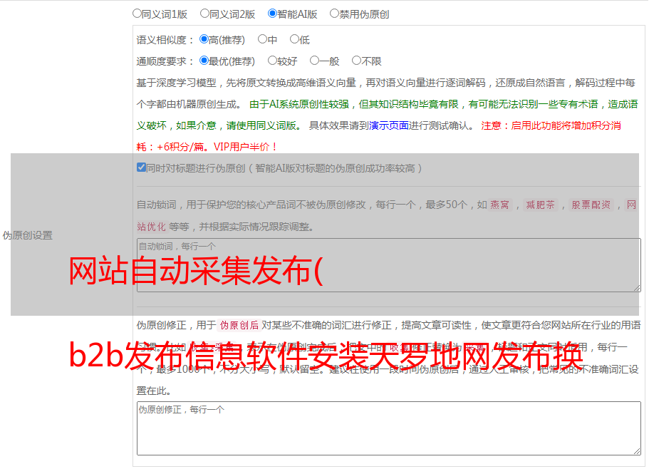 这样生成的标题随机性高,重复度高。设置内容的时候,大家都很头疼。基本上,相同的产品描述是相似的。消息如何不重复?不用担心,我们可以自动采集一些行业发来的信息不会重复,不用自己去找。设置标题时,可以多写一些结束词或修饰语,这样生成的标题会更随意,可重复。设置内容时。每个人都在头疼。基本上相同的产品描述都是相似的,那么消息怎么能不重复呢?不用担心,我们在某些行业可以自动采集,这样发送的信息就不会重复了,不用自己去找。七星B2B助手采用可视化html编辑器,用户无需懂html代码,即可可视化,随意加粗,换行。添加图片。