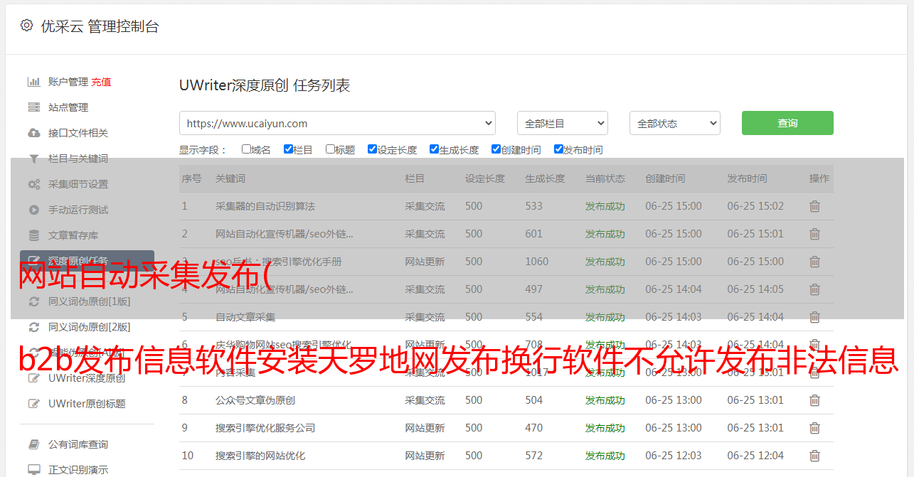 2.支持自动随机生成标题,自动城市名和任意结尾词,标题对应内容,自动上传图片,无数的句子可以组合成不同的原创内容,只要你发个网站,秒收!您可以在已设置的不同内容中随机选择一个内容。