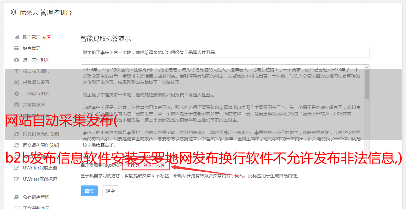 6. 收录多项智能功能,如:一键采集关键词、一键采集图片、自动生成标题、自动生成内容、随机智能选择各种单词等;