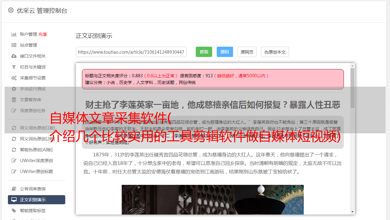 优采云 发布时间: 2021-11-30 01:19自媒体文章采集软件(