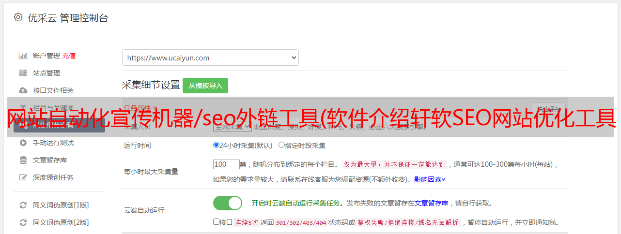 优采云 发布时间: 2021-11-30 03:01网站自动化宣传机器/seo外链工具(软件介绍轩软SEO网站优化工具最新seo工具使用说明
