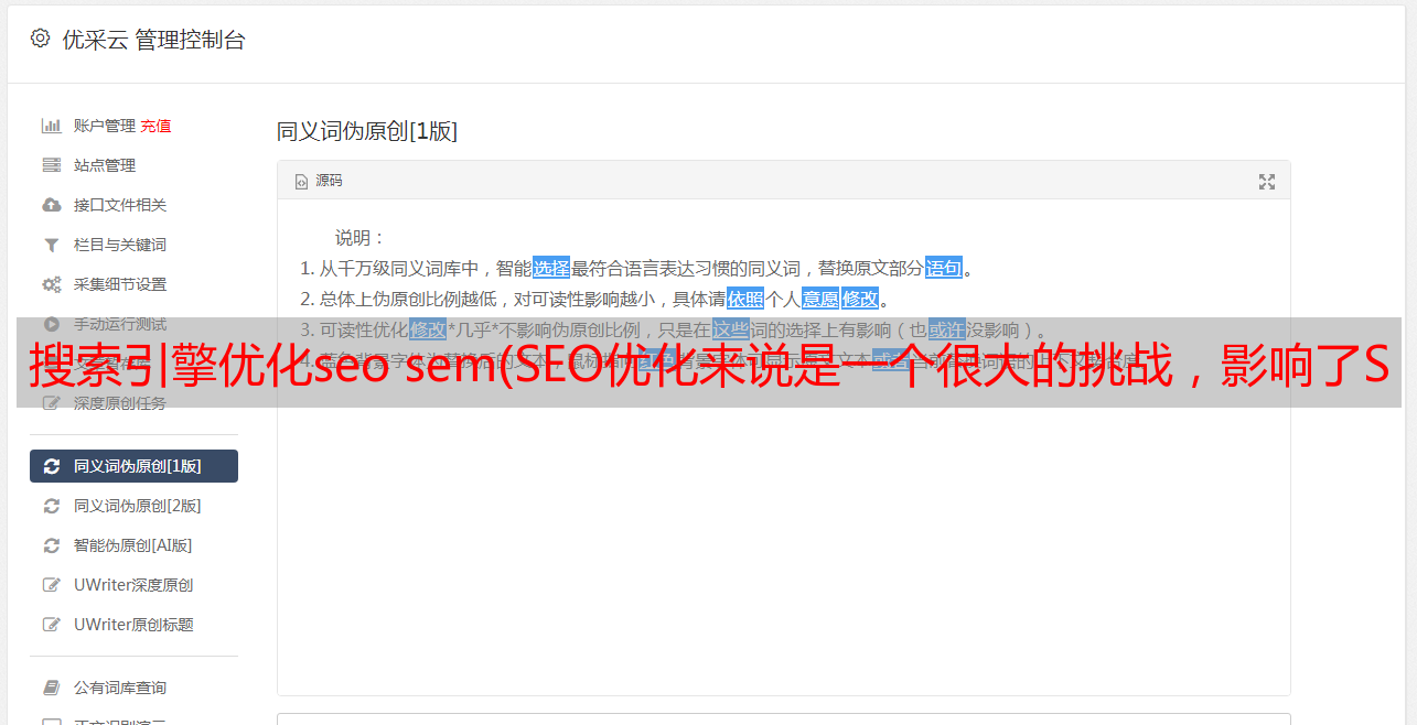 优采云 发布时间: 2021-11-30 03:20搜索引擎优化seo sem(SEO优化来说是一个很大的挑战,影响了SEO发展)