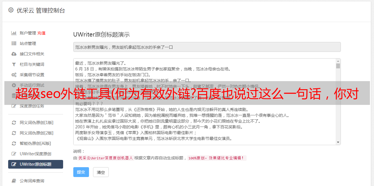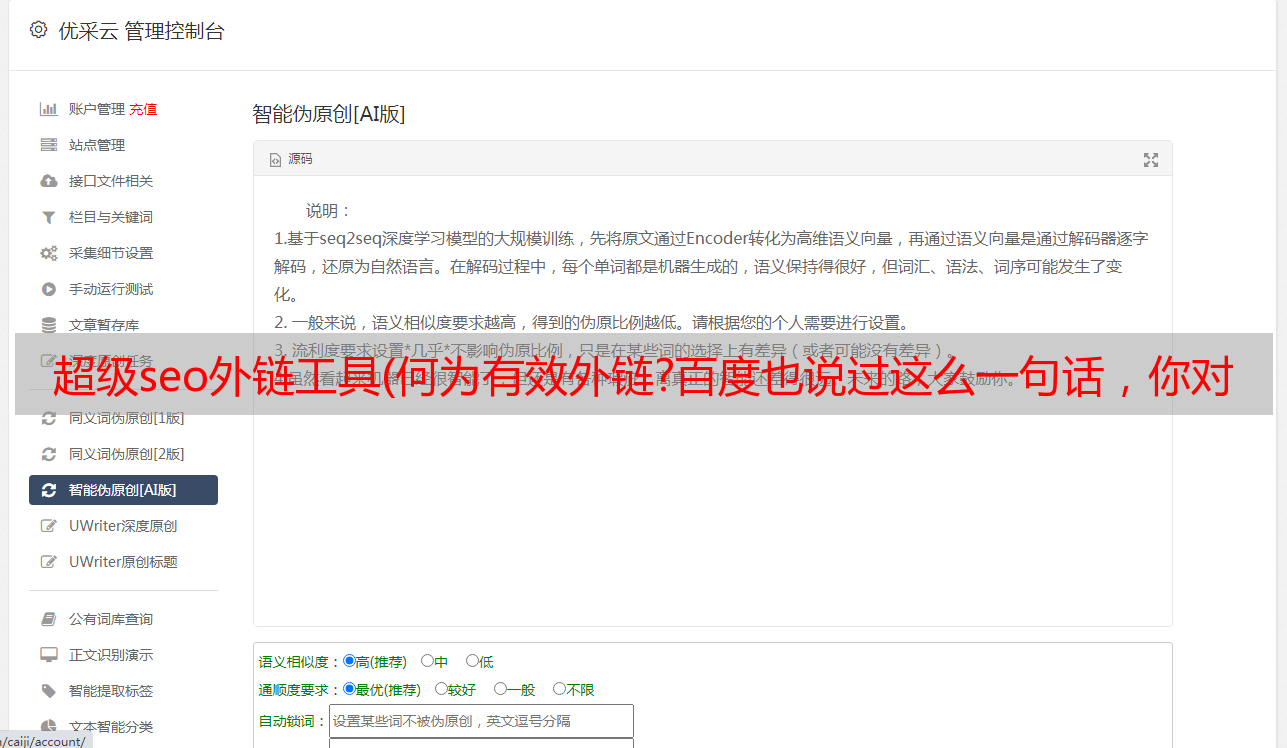 优采云 发布时间: 2021-11-30 06:24超级seo外链工具(何为有效外链?百度也说过这么一句话,你对链接的维度是否掌握到位)