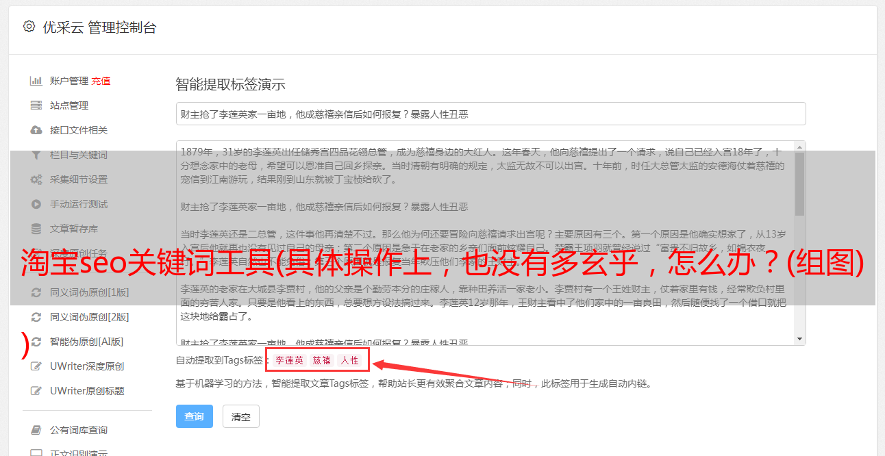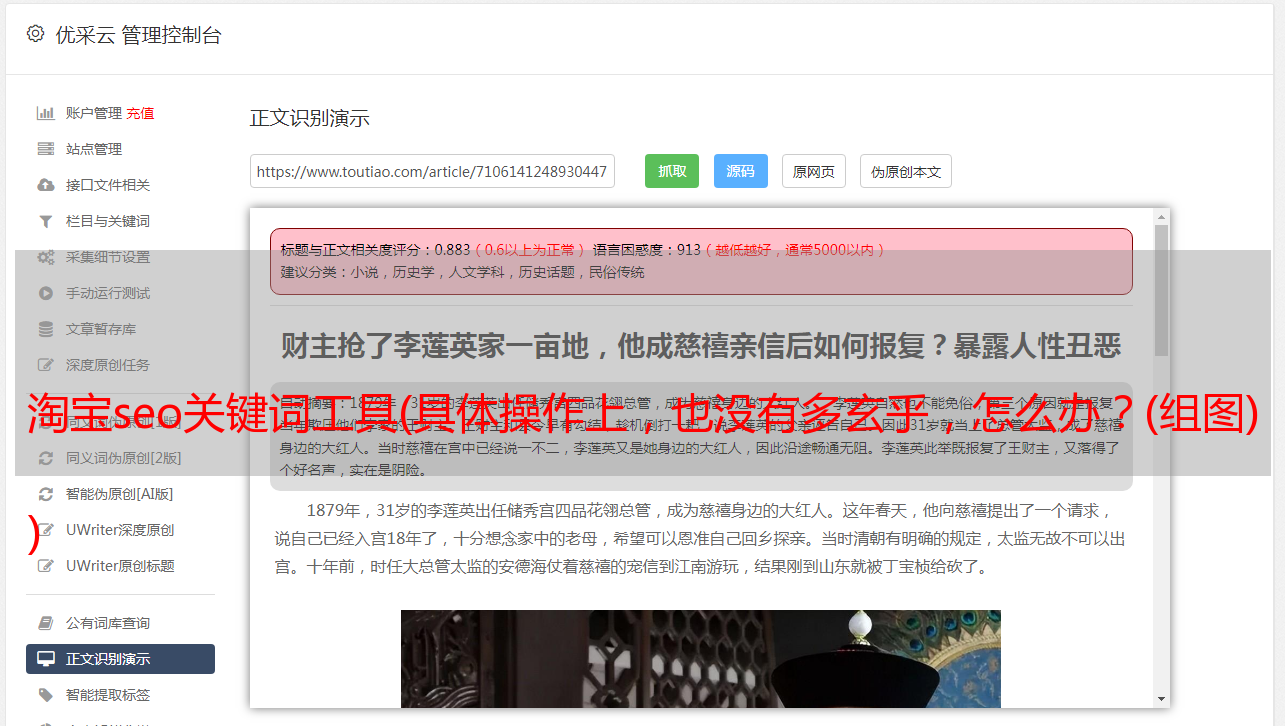 优采云 发布时间: 2021-11-30 07:02淘宝seo关键词工具(具体操作上,也没有多玄乎,怎么办?(组图)