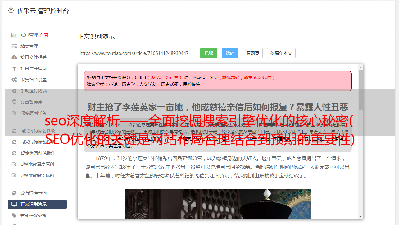 seo深度解析——全面挖掘搜索引擎优化的核心秘密( SEO优化的关键是网站布局合理结合到预期的重要性)