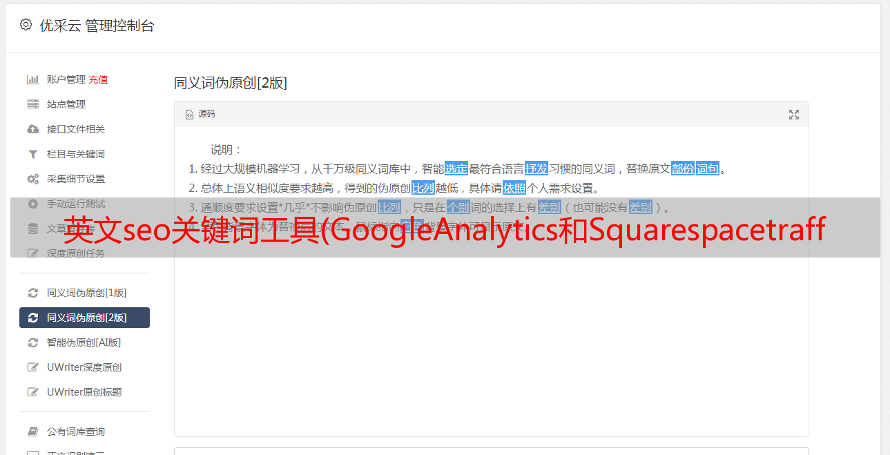 优采云 发布时间: 2021-11-30 20:16英文seo关键词工具(GoogleAnalytics和Squarespacetraffic是一样的效果,但Ahrefs用一套标准)