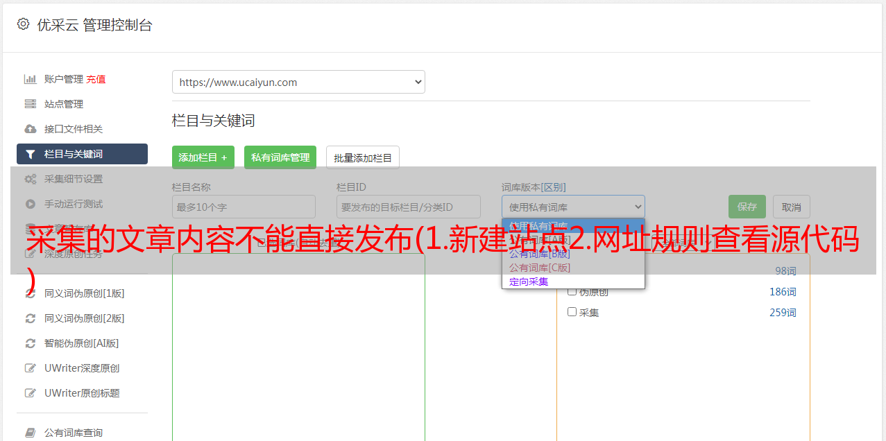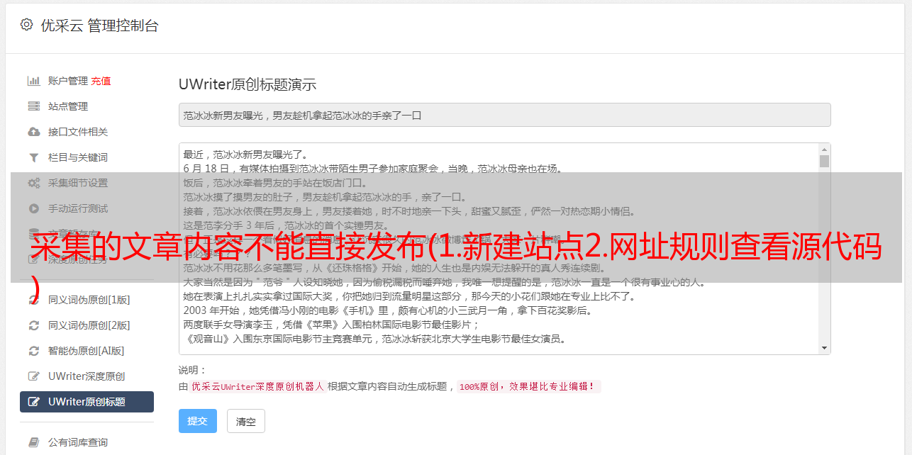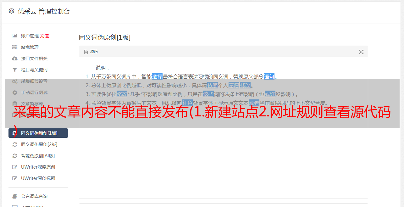 优采云 发布时间: 2021-12-01 00:08采集的文章内容不能直接发布(1.新建站点2.网址规则查看源代码