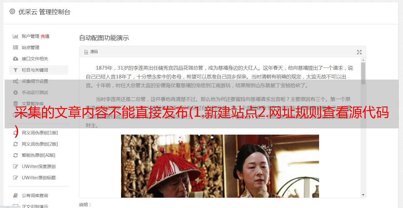 采集的文章内容不能直接发布(1.新建站点2.网址规则查看源代码 )