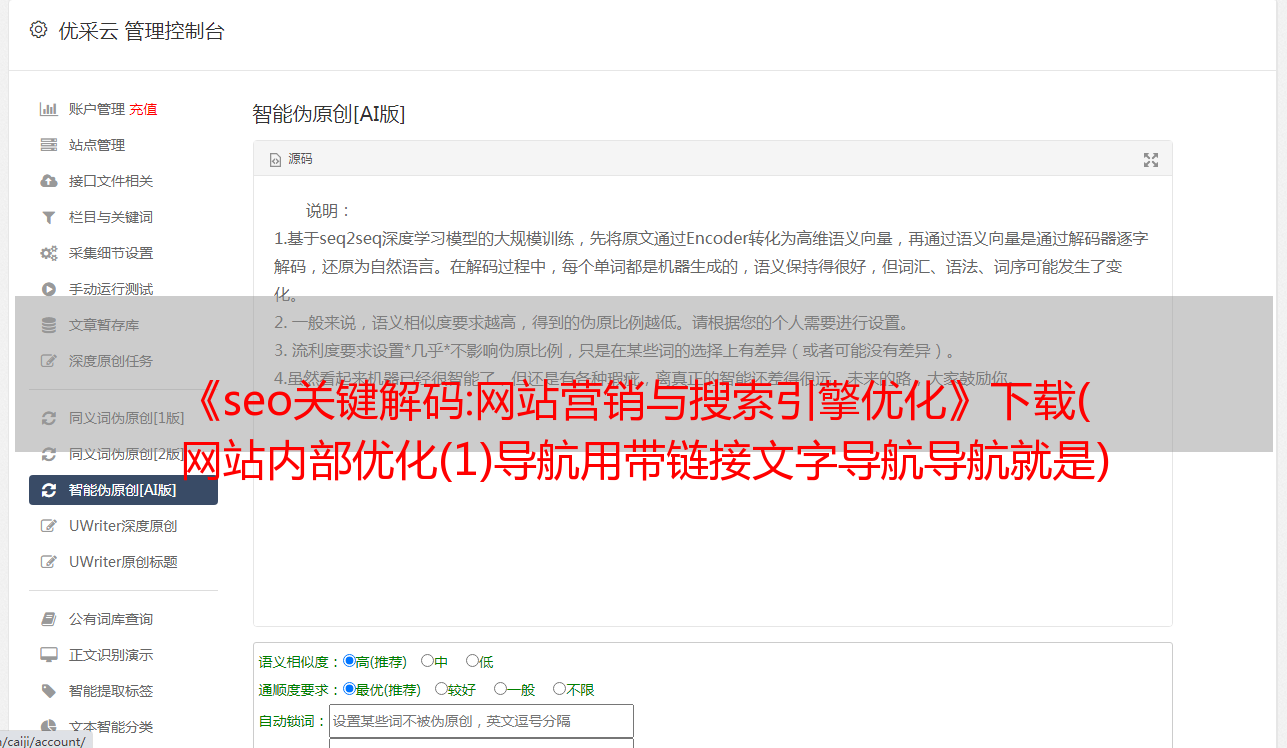优采云 发布时间: 2021-12-01 08:17《seo关键解码:网站营销与搜索引擎优化》下载(