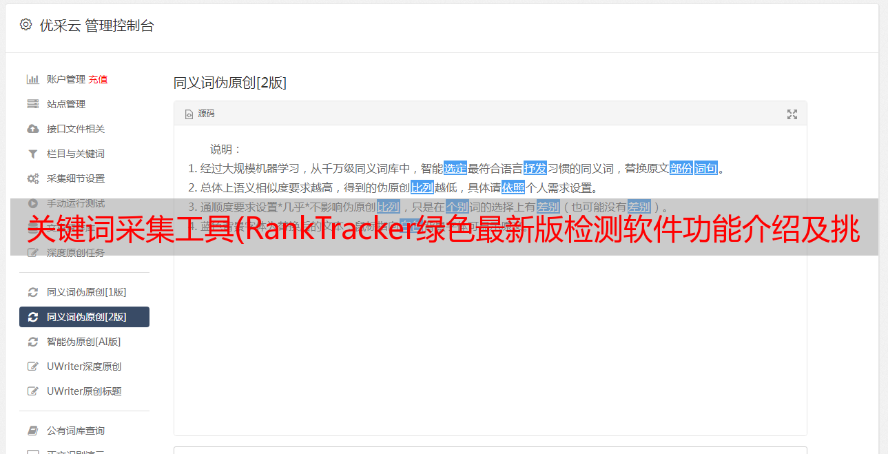 优采云 发布时间: 2021-12-01 09:19关键词采集工具(RankTracker绿色最新版检测软件功能介绍及挑选赢家)