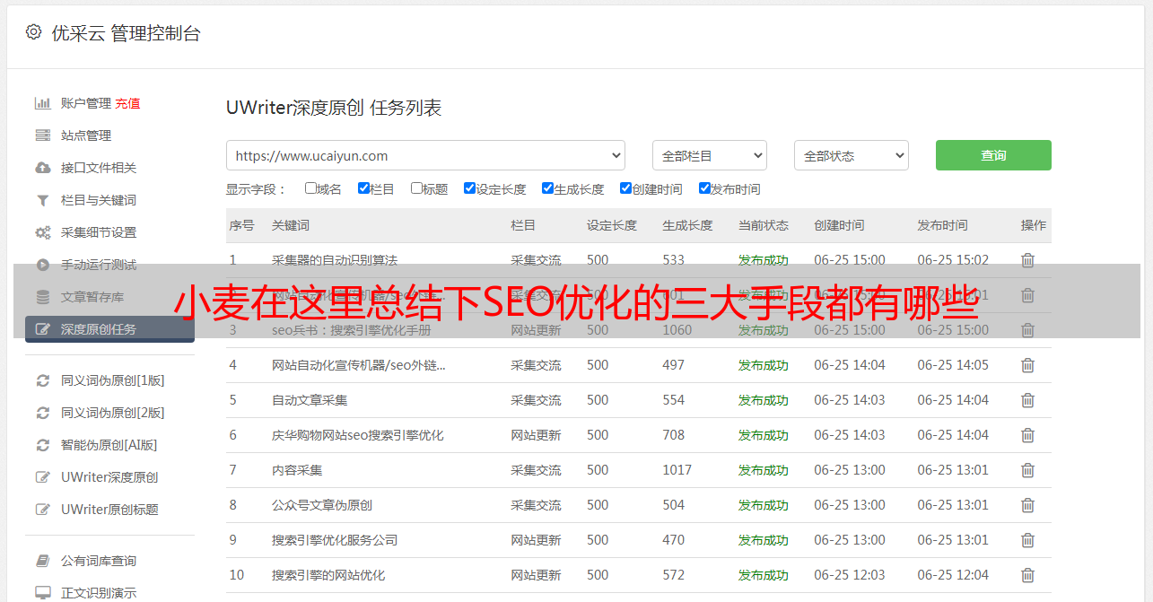 优采云 发布时间: 2021-04-01 20:14小麦在这里总结下SEO优化的三大手段都有哪些